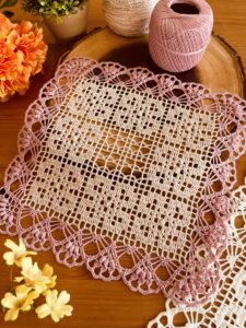 【編み方】方眼編みのドイリー No.56「スクエア・エレガンス」サイズ変更可能♪テーブルランナーにも|Rieko / Riekoのレース編みレシピ