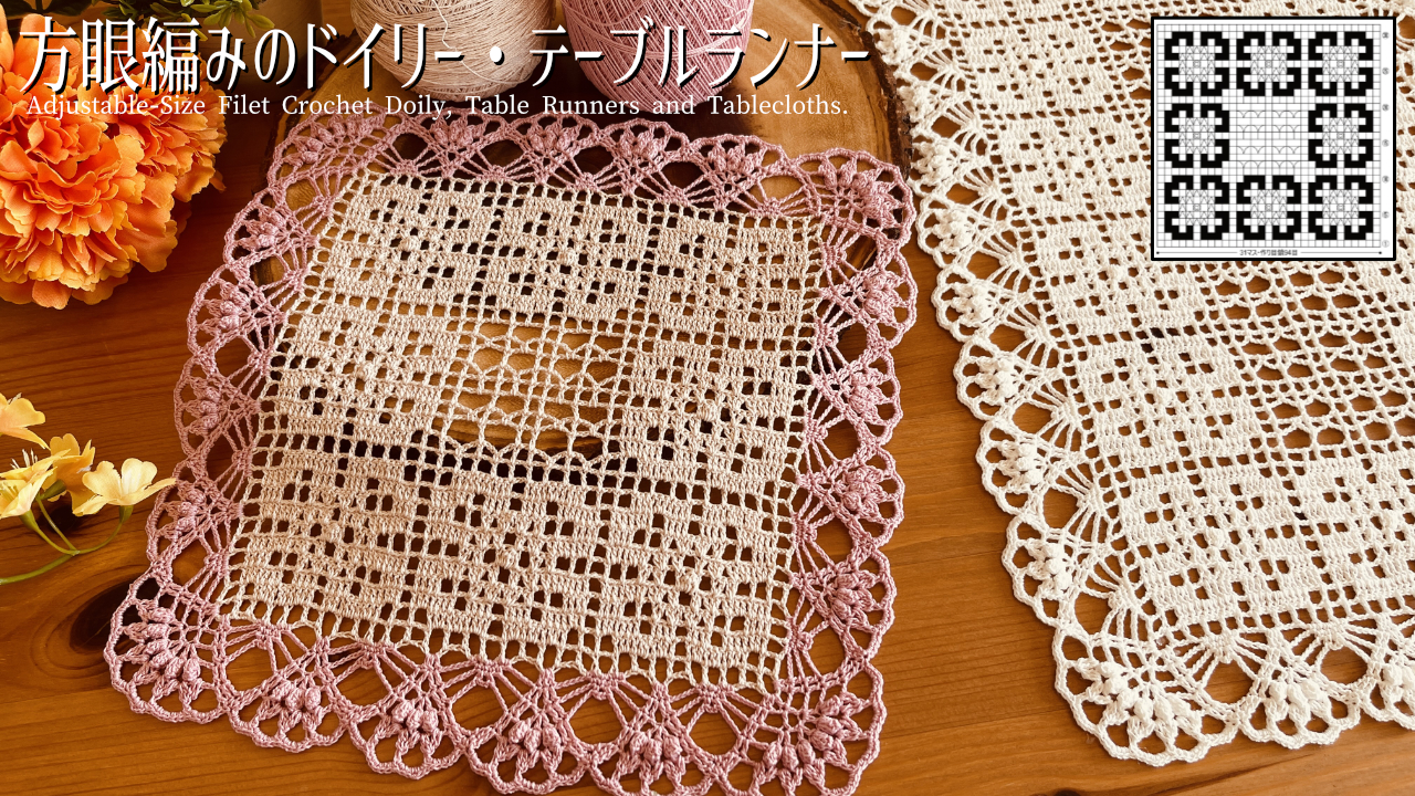 【編み方】方眼編みのドイリー No.56「スクエア・エレガンス」サイズ変更可能♪テーブルランナーにも|Rieko / Riekoのレース編みレシピ